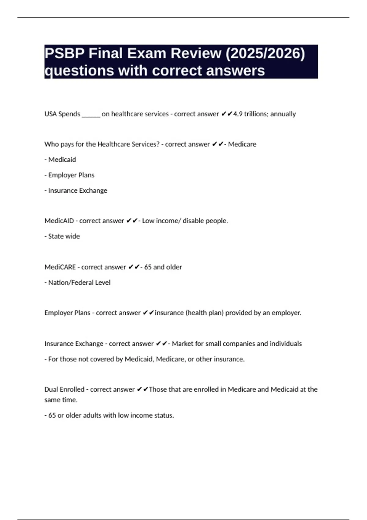 PSBP Final Exam Review (2025/2026) questions with correct answers