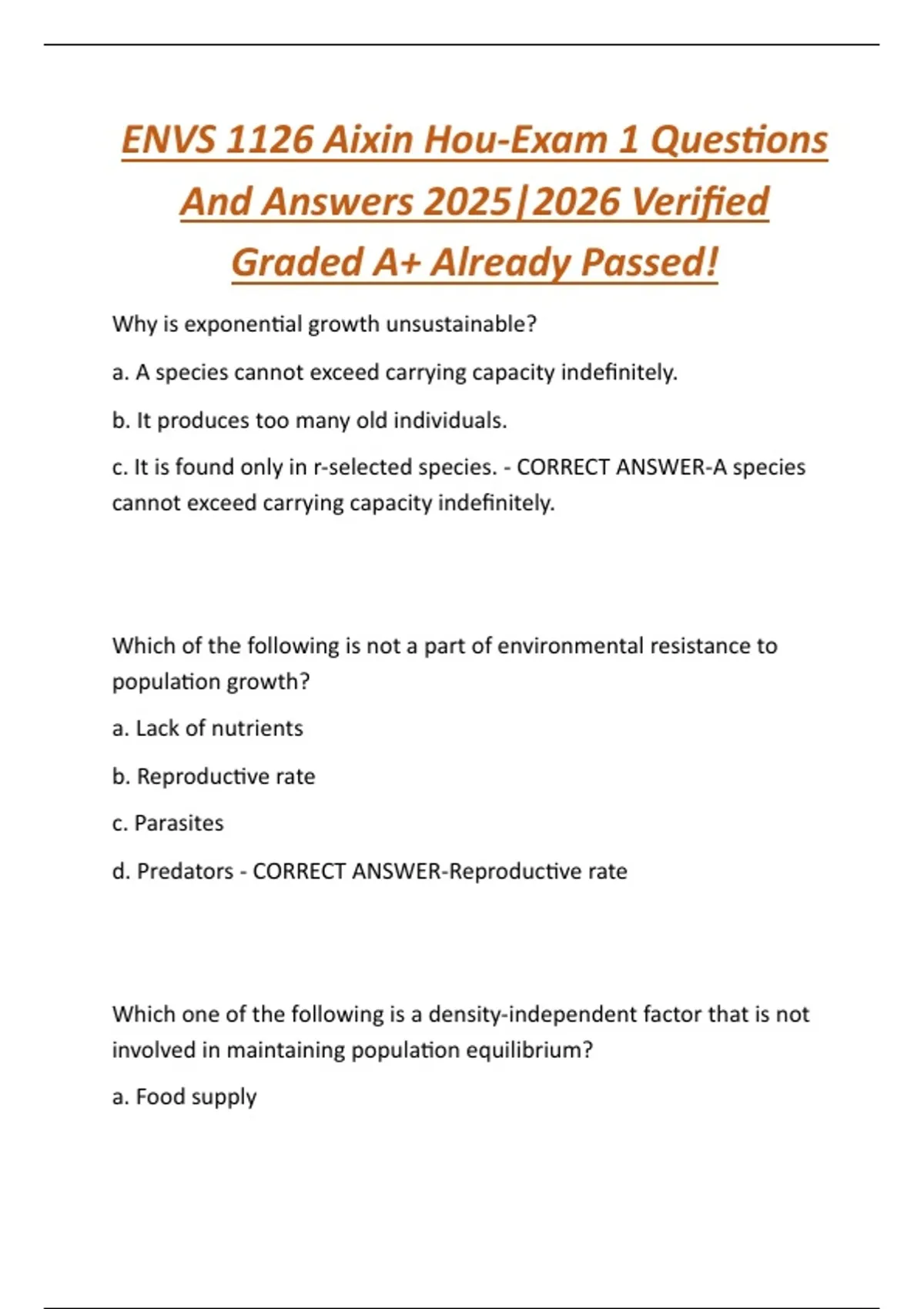 ENVS 1126 Aixin Hou-Exam 1 Questions And Answers 2025|2026 Verified Graded A+ Already Passed!