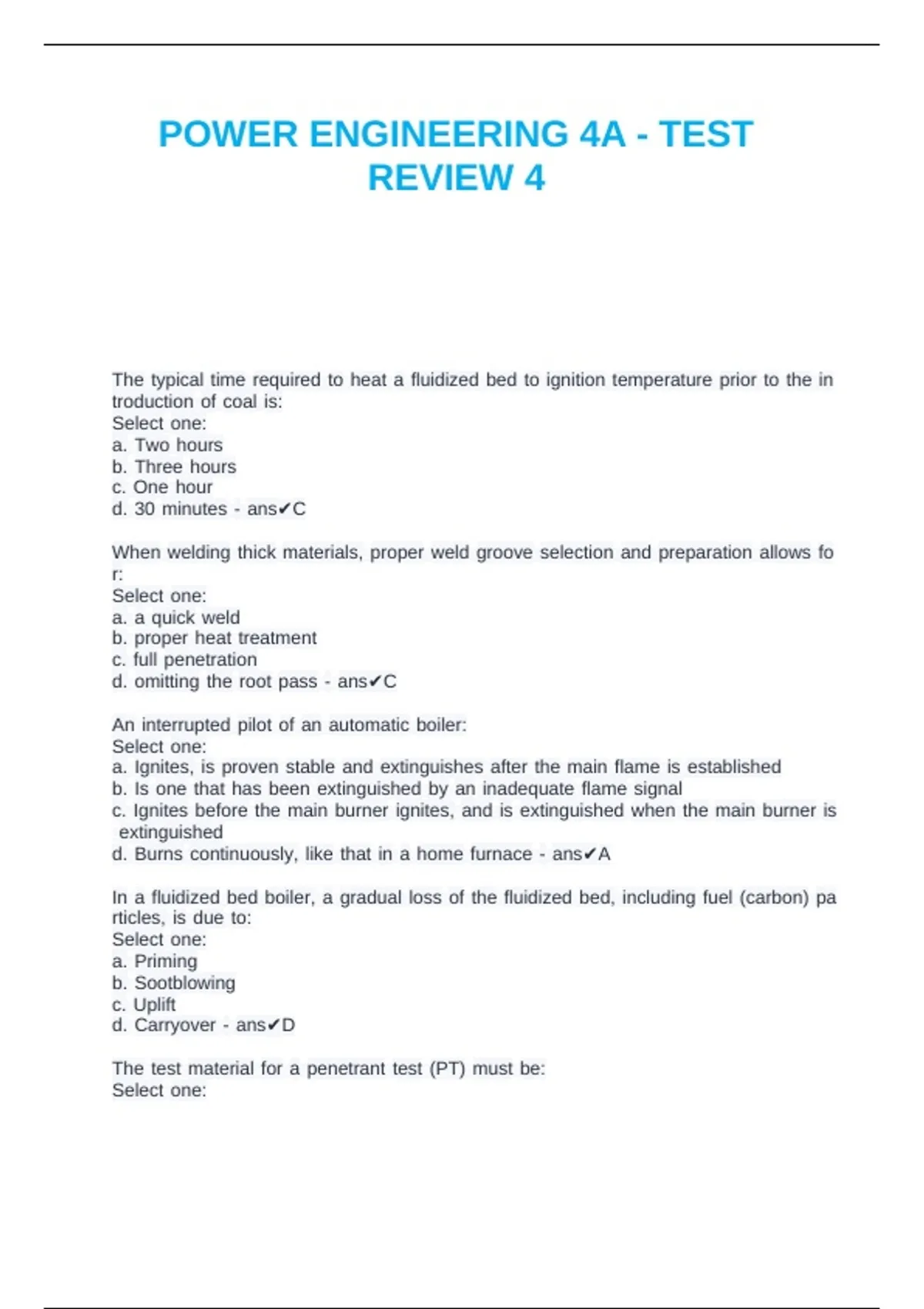 POWER ENGINEERING 4A - TEST