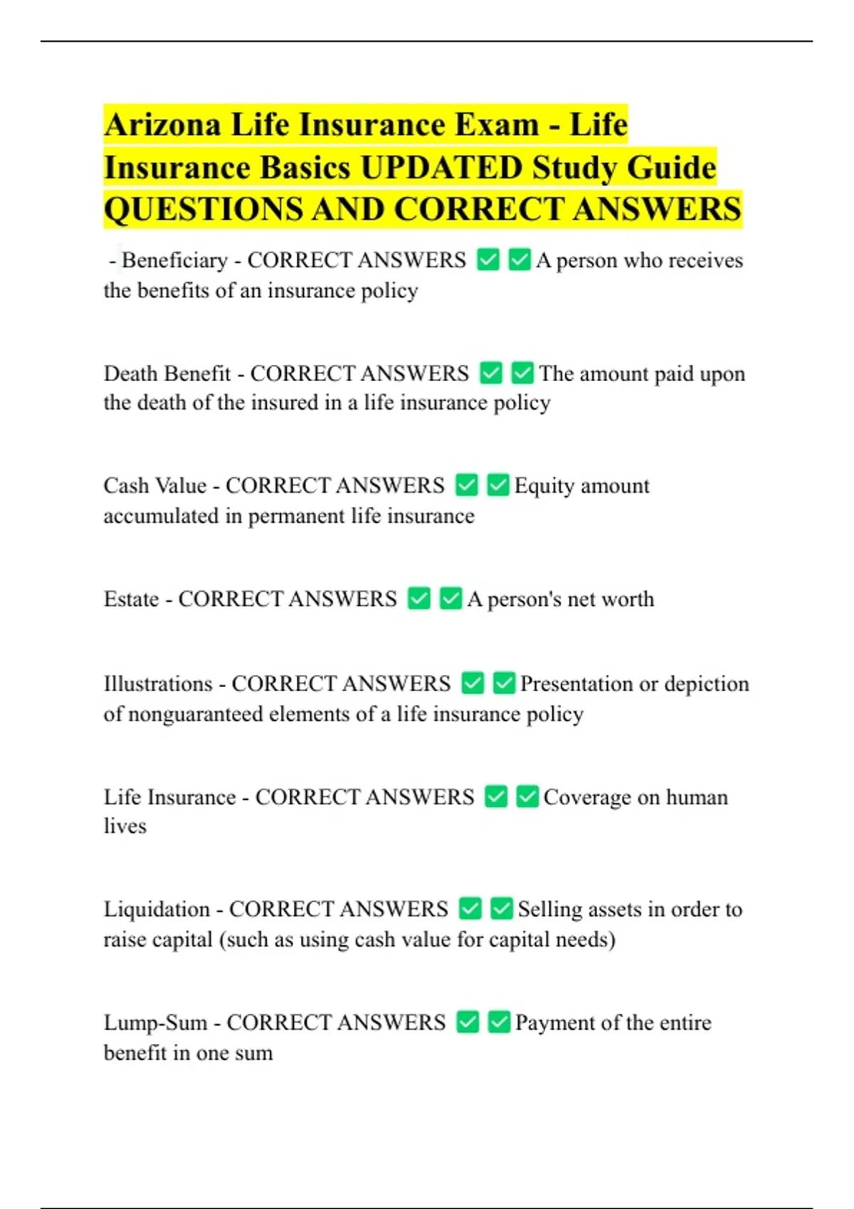 Arizona Insurance Exam: Content Outline and Key Topics UPDATED Study Guide QUESTIONS AND CORRECT ANSWERS