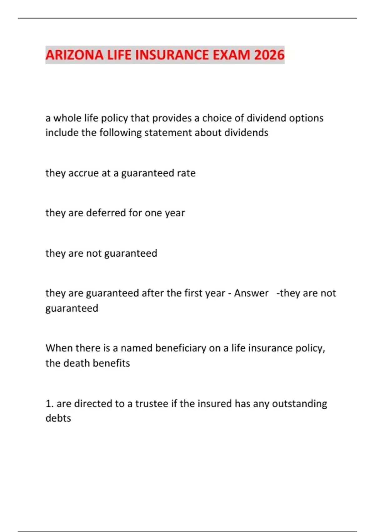 ARIZONA LIFE INSURANCE EXAM 2026