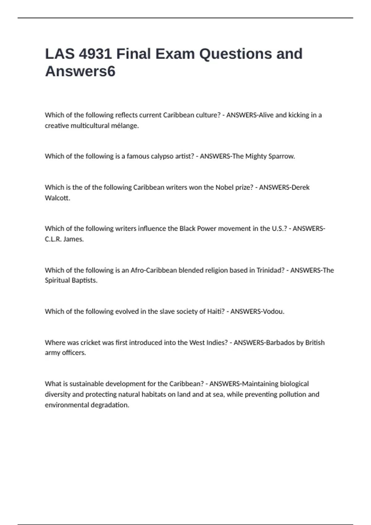 LAS 4931 Final Exam Questions and
