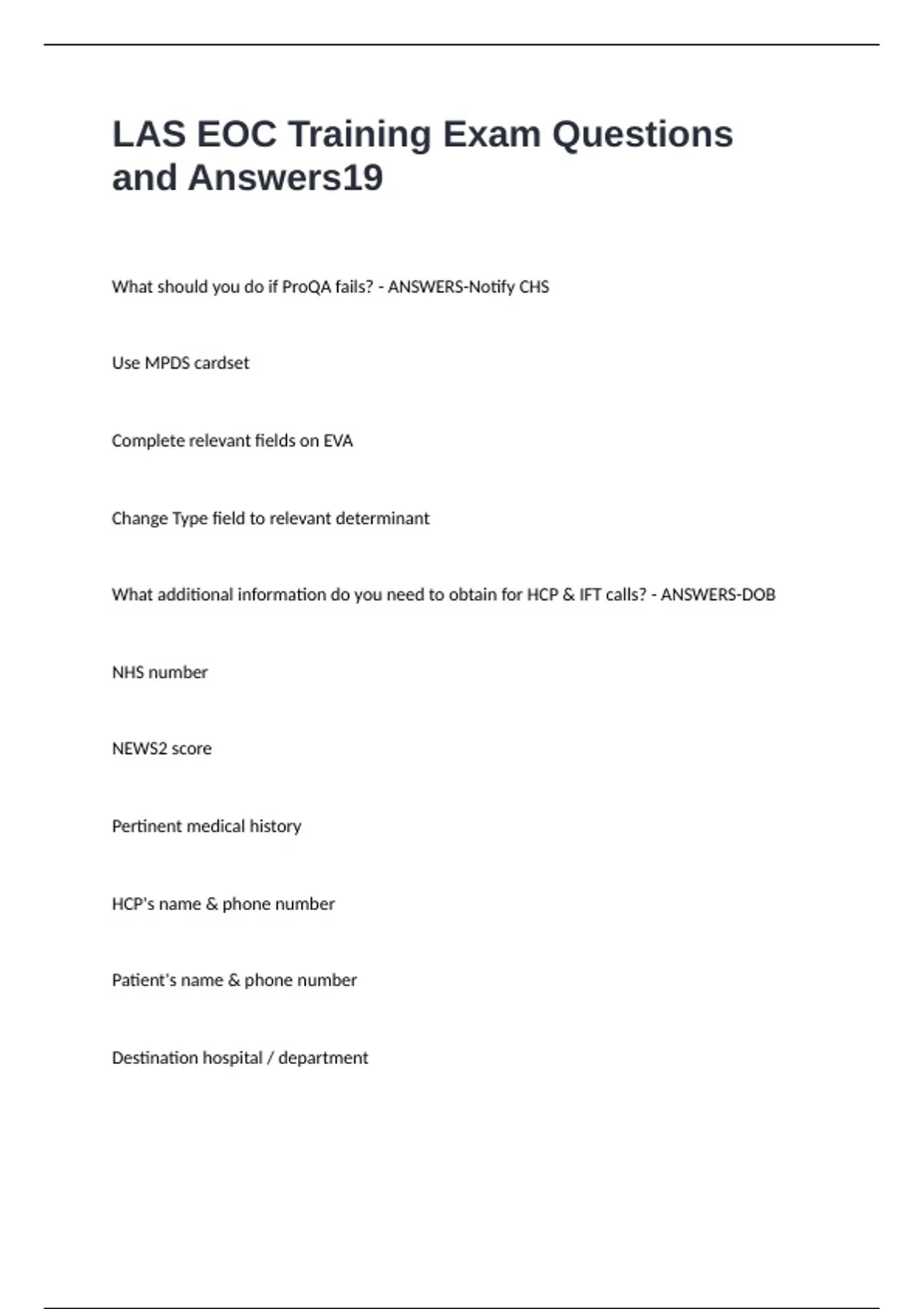 LAS EOC Training Exam Questions and Answers