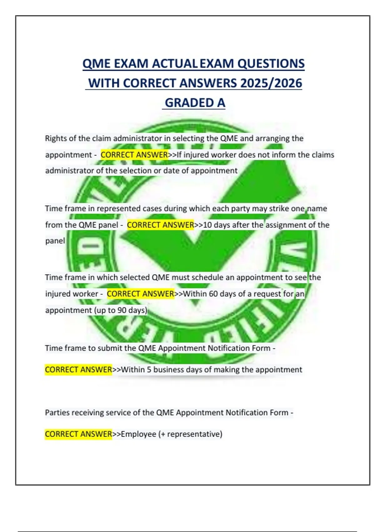 CORRECT ANSWER>>Receipt of the QME Appointment Notification Form