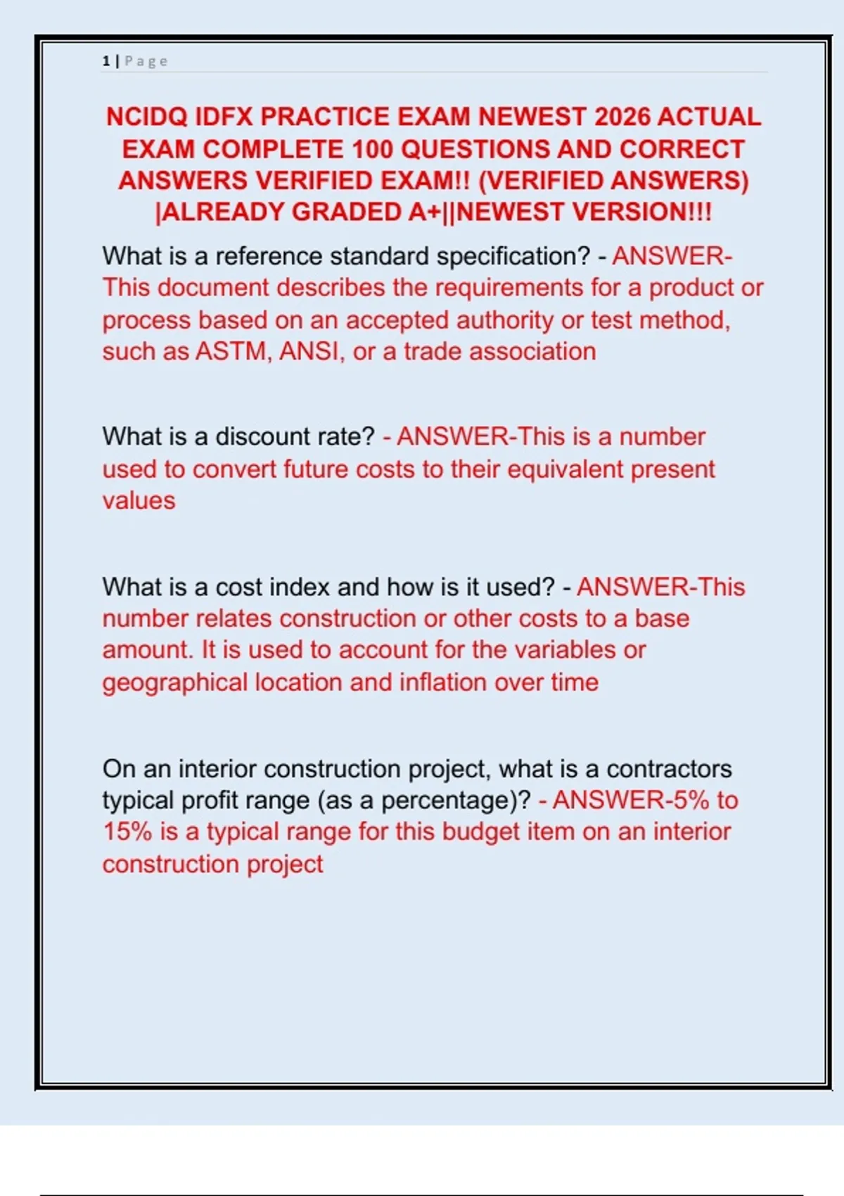 NCIDQ IDFX PRACTICE EXAM NEWEST 2026 ACTUAL
