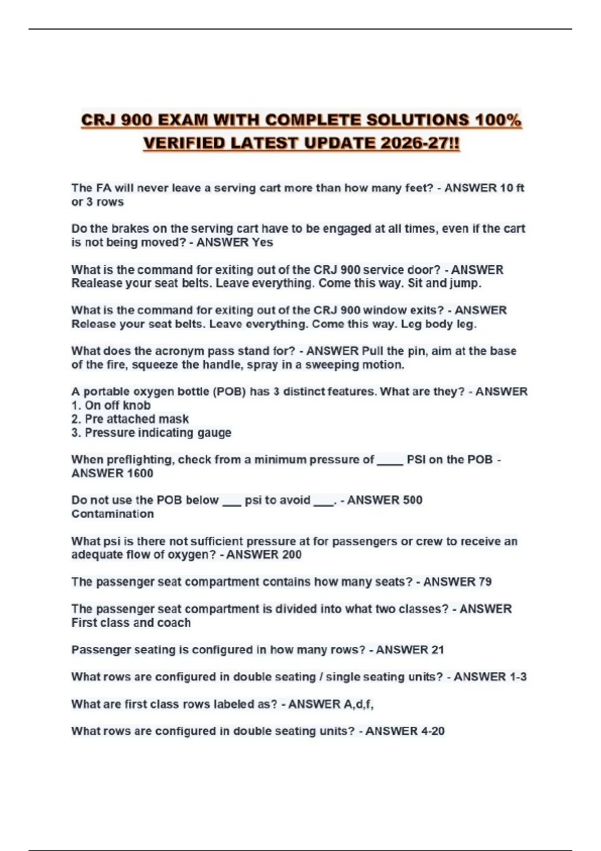 CRJ 900 EXAM WITH COMPLETE SOLUTIONS 100% VERIFIED LATEST UPDATE 2026-27!!...