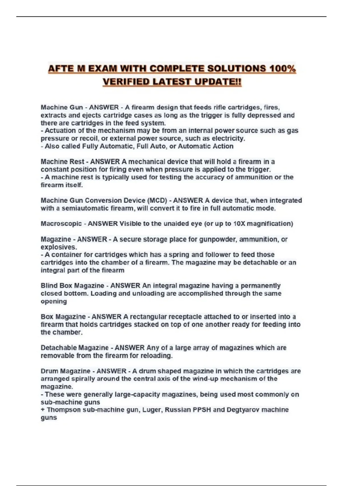 AFTE M EXAM WITH COMPLETE SOLUTIONS 100% VERIFIED LATEST UPDATE!!