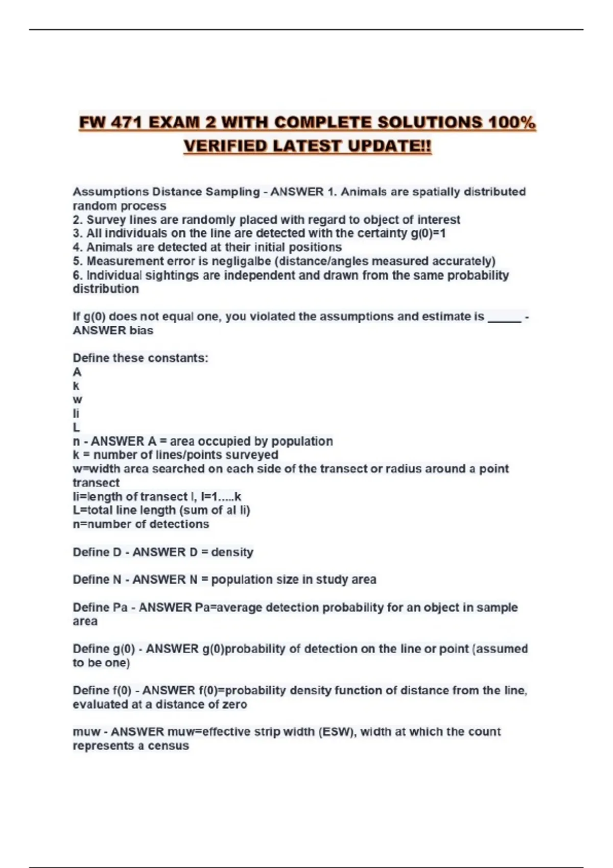 FW 471 EXAM 2 WITH COMPLETE SOLUTIONS 100% VERIFIED LATEST UPDATE!!...