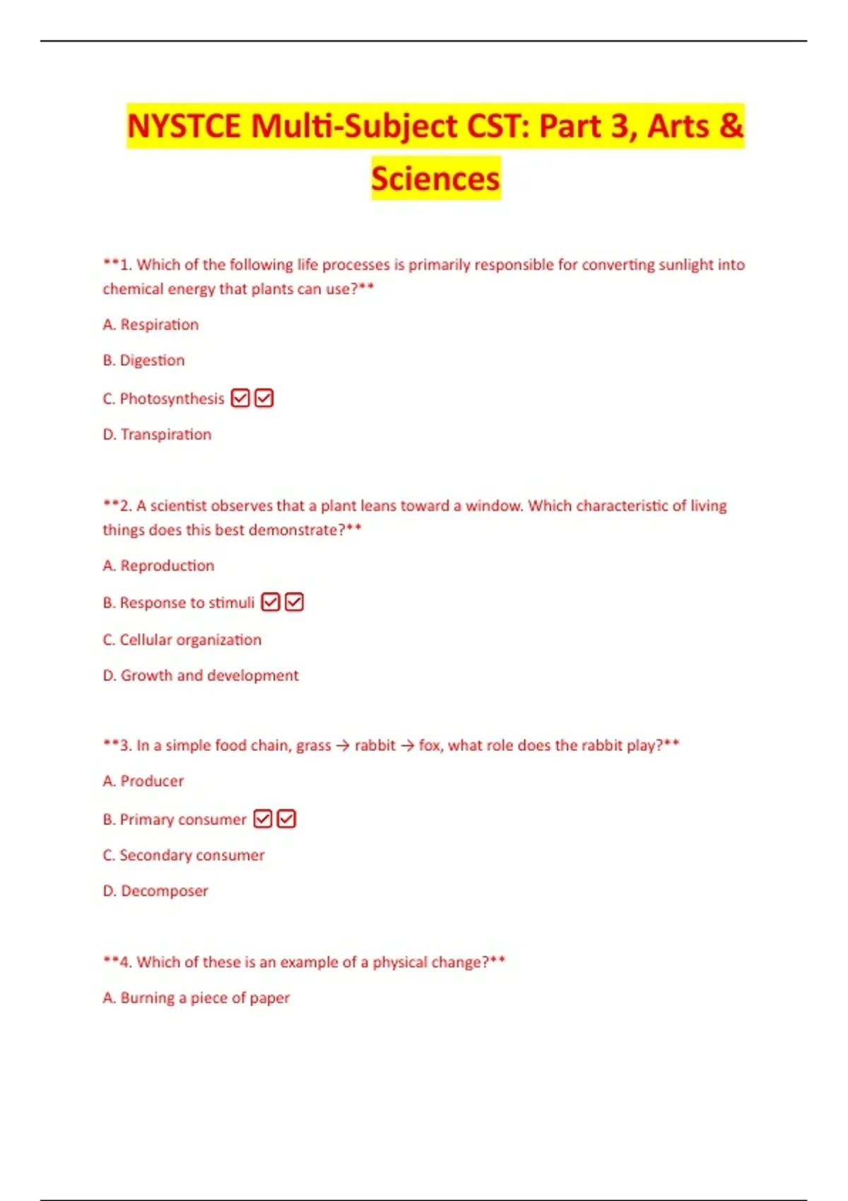 NYSTCE Multi-Subject CST: Part 3, Arts & Sciences