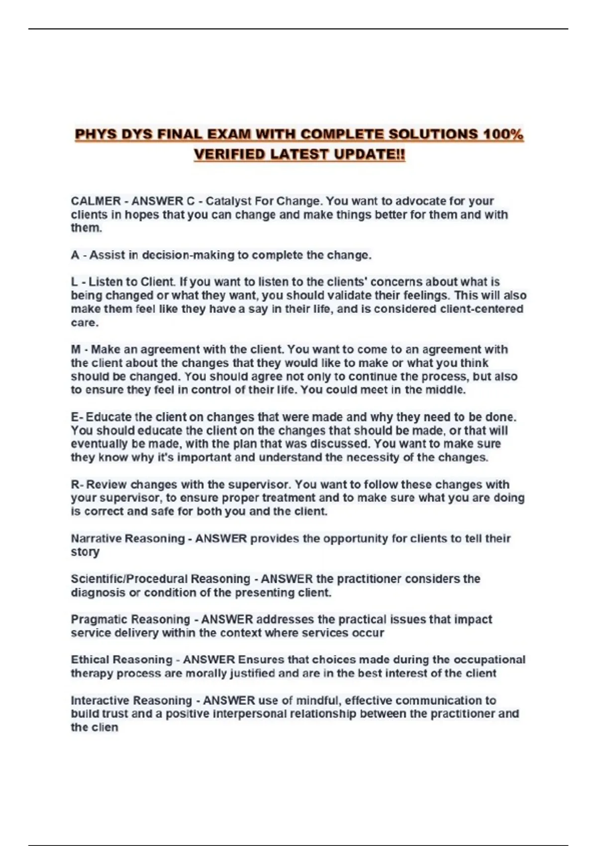 PHYS DYS FINAL EXAM WITH COMPLETE SOLUTIONS 100% VERIFIED LATEST UPDATE!!...