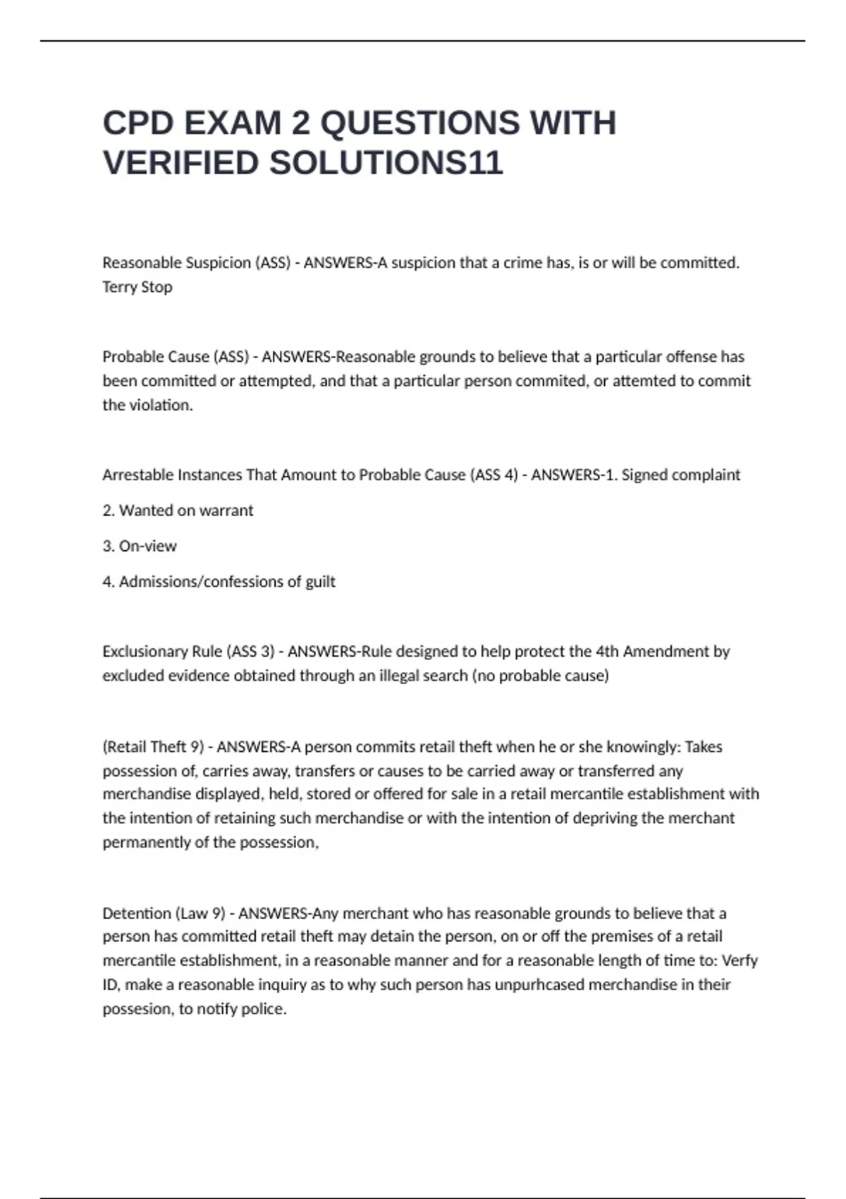 Probable Cause (ASS) - ANSWERS-Reasonable grounds to believe that a particular offense has