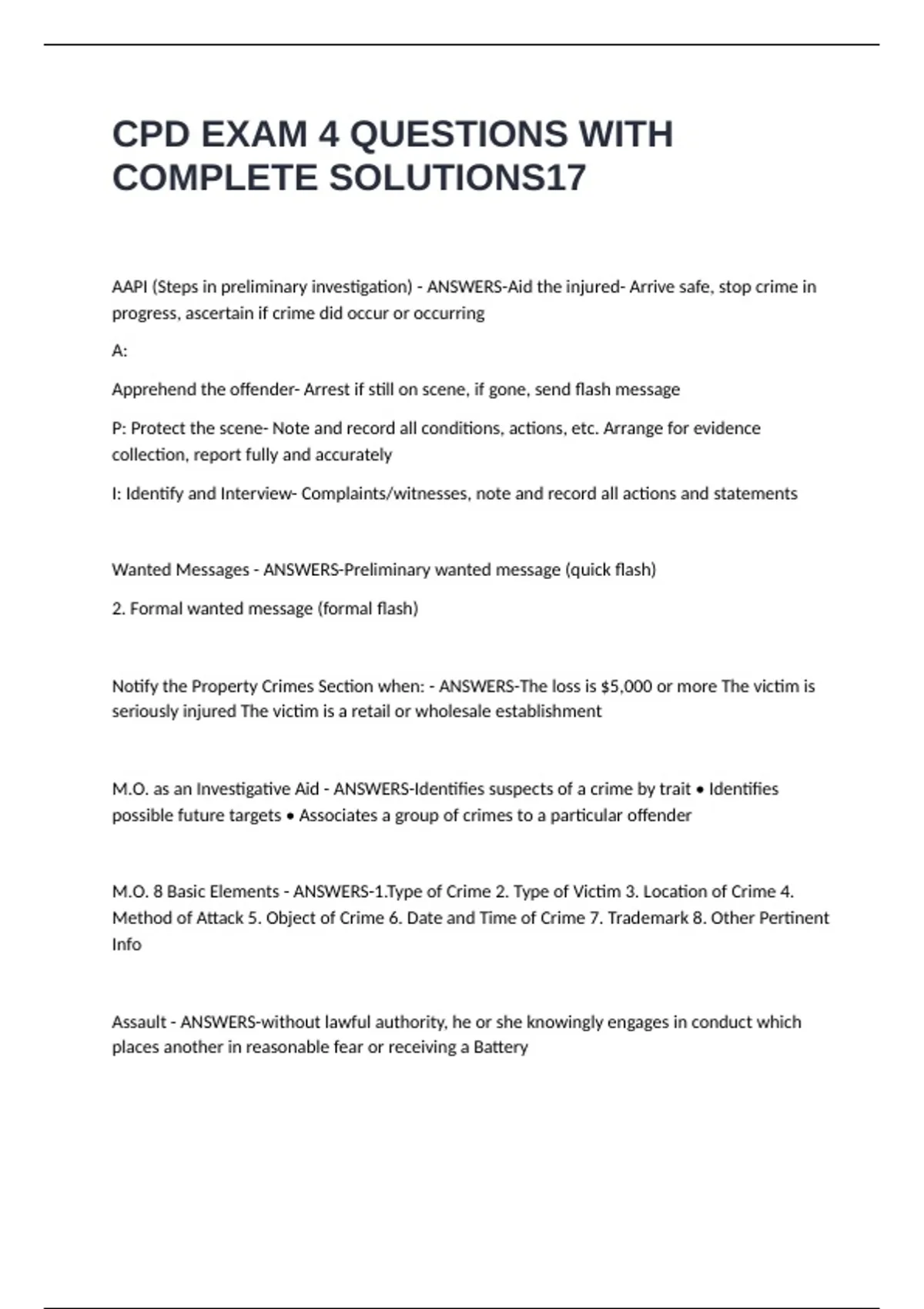 M.O. 8 Basic Elements - ANSWERS-1.Type of Crime 2. Type of Victim 3. Location of Crime 4.