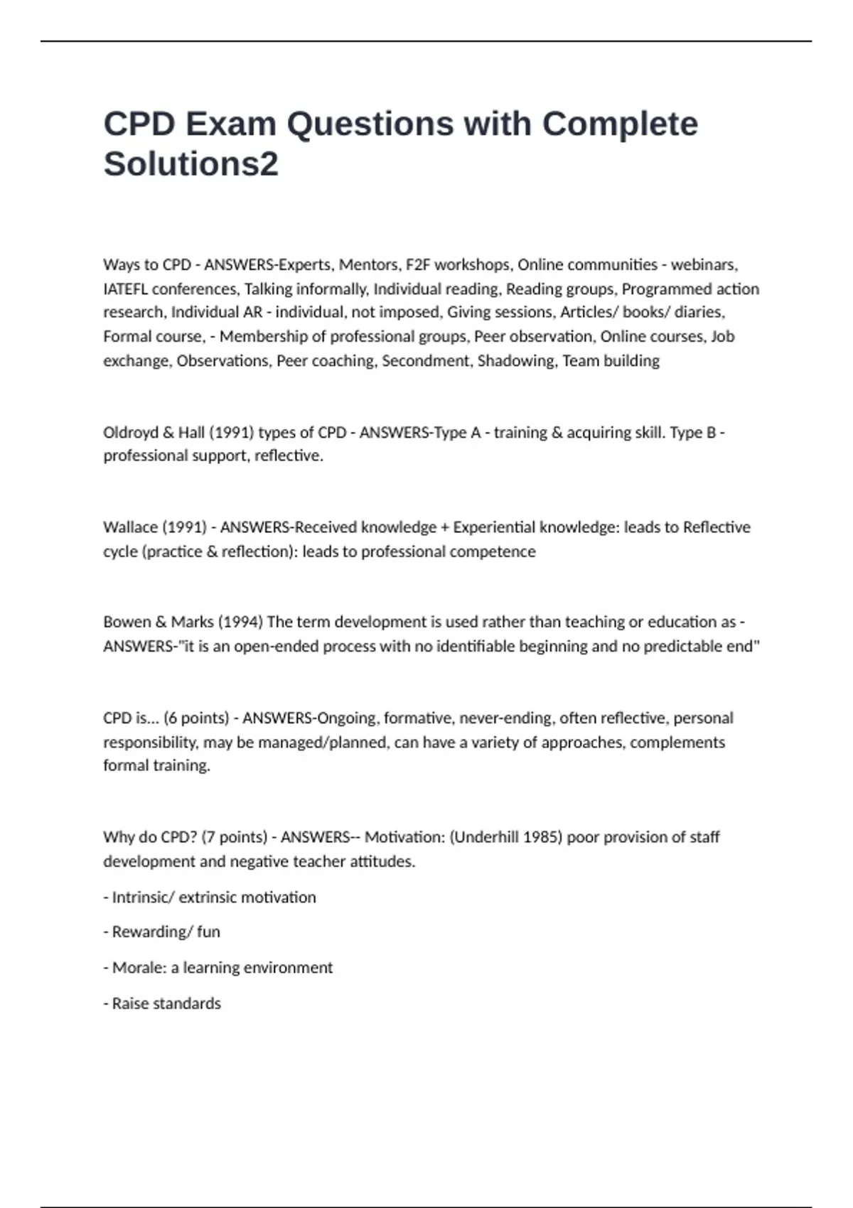 Why do CPD? (7 points) - ANSWERS-- Motivation: (Underhill 1985) poor provision of staff