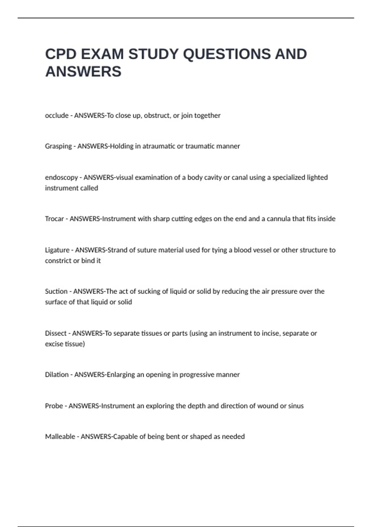 CPD EXAM STUDY QUESTIONS AND