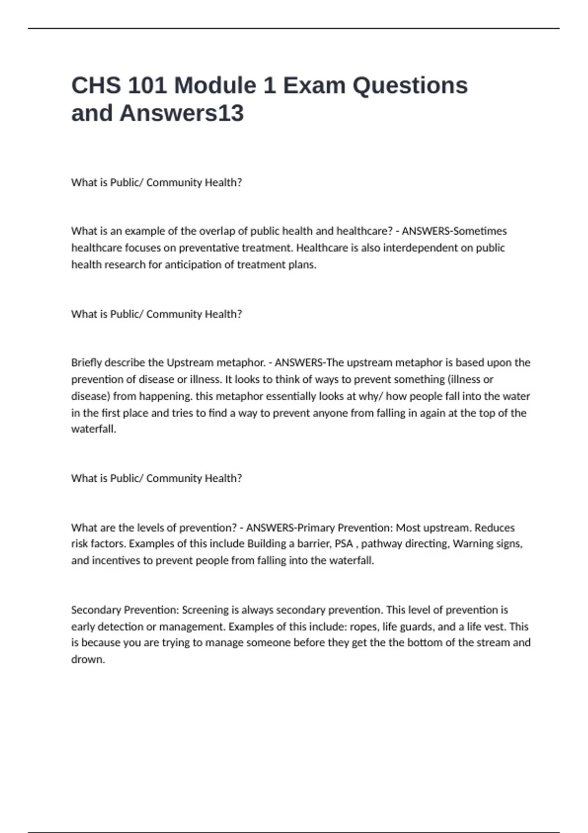 CHS 101 Module 1 Exam Questions and Answers