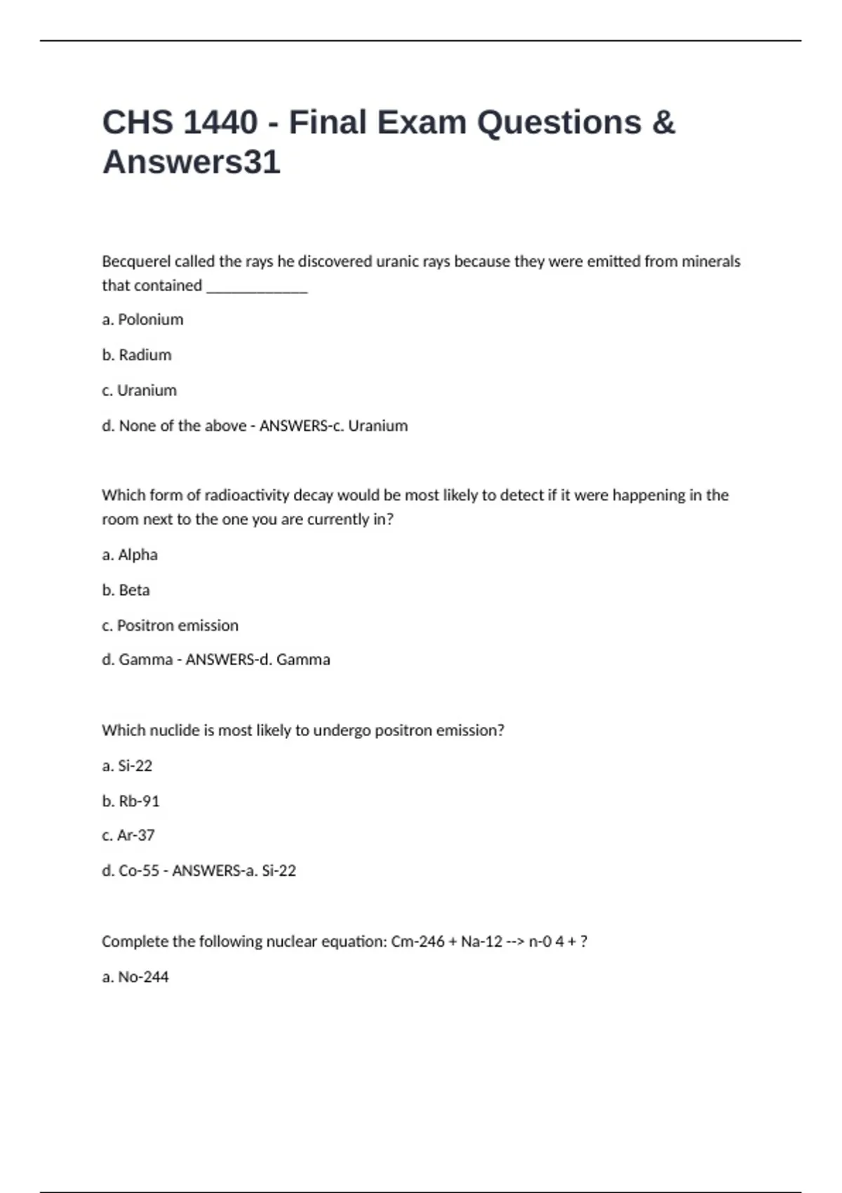 d. None of the above - ANSWERS-c. Uranium