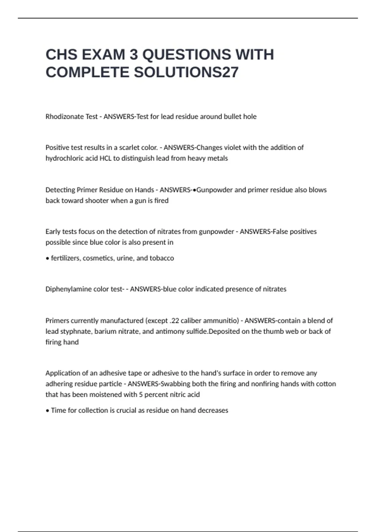 CHS EXAM 3 QUESTIONS WITH COMPLETE SOLUTIONS