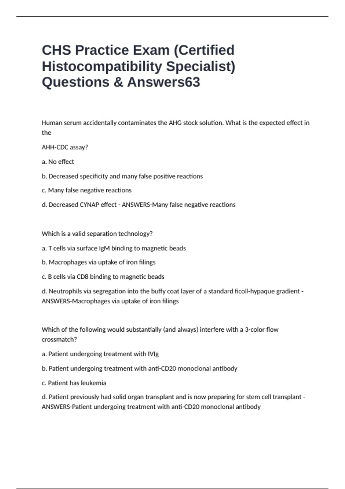 CHS Practice Exam (Certified Histocompatibility Specialist) Questions & Answers