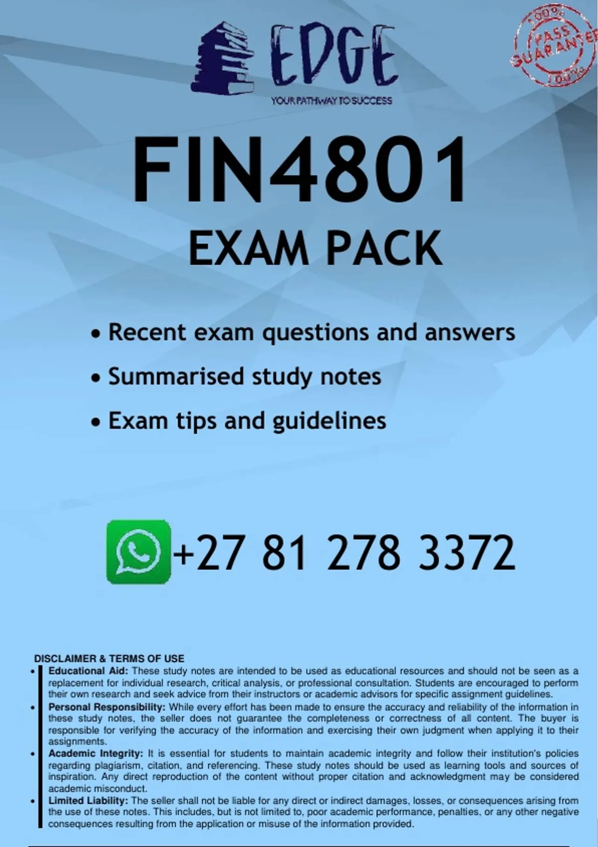Well-structured FIN4801 EXAM PREPARATION PACK - DISTINCTION GUARANTEED. Contains recent exam questions and answers, and Summarised study notes. All you need to pass the 2026 EXAMS