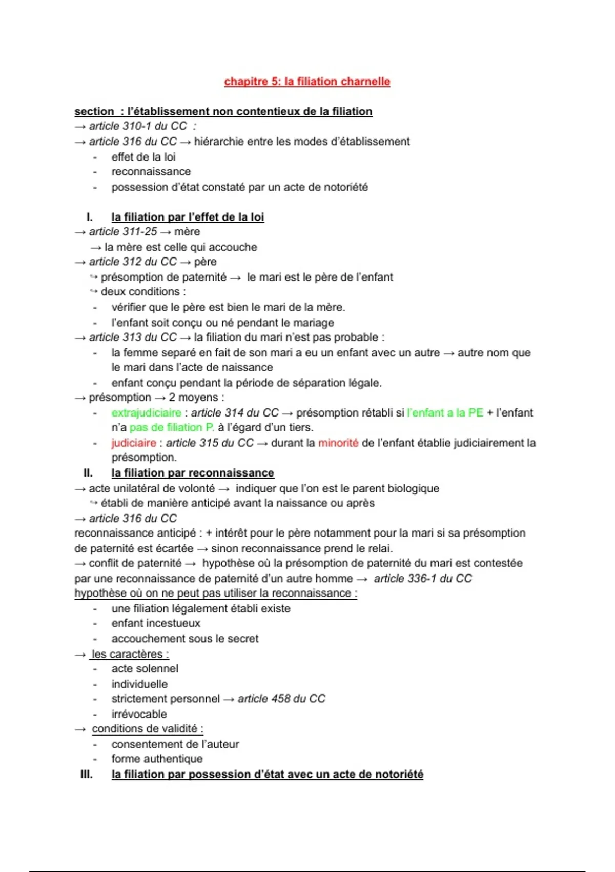 → article 316 du CC → hiérarchie entre les modes d’établissement