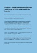 This document provides a comprehensive review of FCCS (Financial Consolidation and Close System), covering key concepts, processes, and functionalities used in financial reporting and consolidation. It includes summaries of consolidation methods, intercompany eliminations, currency translation, reporting, and system navigation. The guide is designed to help learners understand FCCS principles, practice exam-style questions, and prepare effectively for assessments or certification exams.