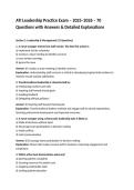This comprehensive practice exam is designed to prepare nursing and healthcare students for the ATI Leadership Assessment. It covers leadership principles, delegation, prioritization, communication, conflict resolution, patient safety, quality improvement, and legal/ethical considerations. Each question includes a correct answer and detailed explanation to reinforce understanding and support exam readiness.