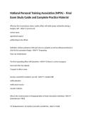 This document covers the key topics included in the National Personal Training Association (NPTA) final exam, including anatomy, physiology, training principles, nutrition, and client assessment. It provides structured summaries and practice material to help candidates prepare effectively for the certification assessment. The content aligns with the official exam requirements and supports comprehensive exam preparation.