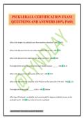 PICKLEBALL CERTIFICATION EXAM QUESTIONS AND ANSWERS 100% PASS