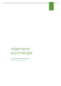 - Dit is een overzichtelijke samenvatting van het vak Algemene psychologie die de inhoud van het boek en notities tijdens de les +pwp's bevat. Ik heb met deze samenvatting 18/20 gehaald! Veel succes!