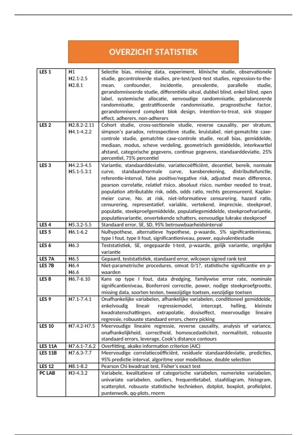 Bundel: Samenvatting Overzicht statistiek