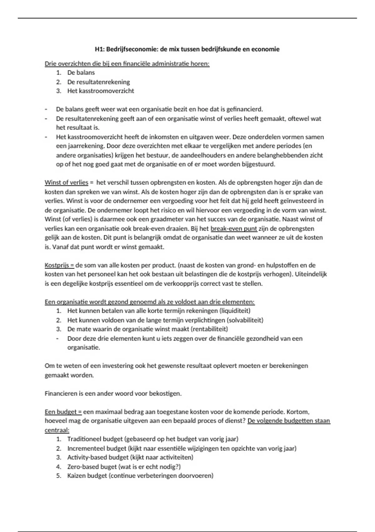 Samenvatting van Basisbeginselen Bedrijfseconomie - Hoofdstuk 1 t/m 6