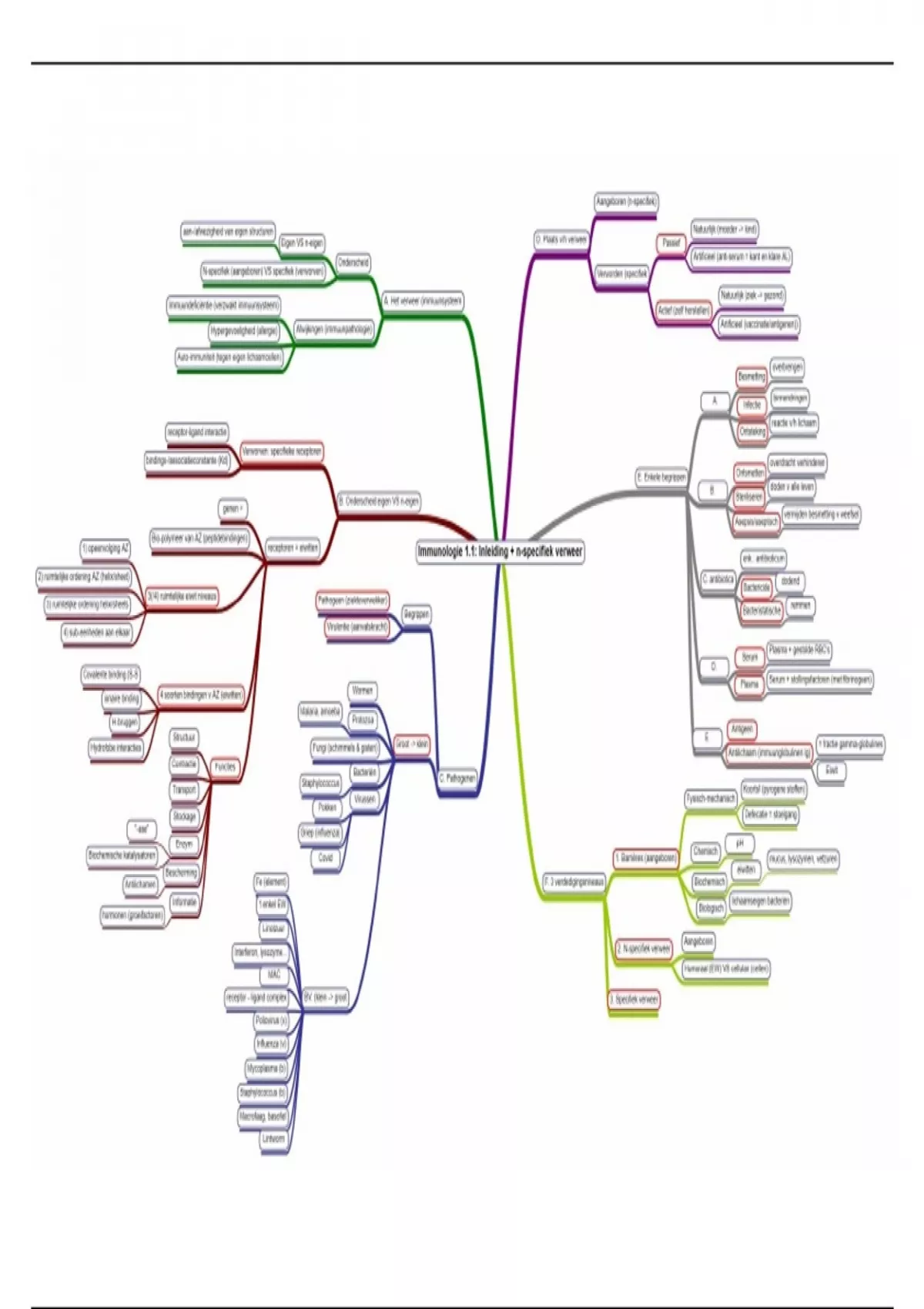 Mindmaps over Les 1: Inleiding Niet-specifiek verweer (deel 1) Les 2: Niet-specifiek verweer (deel 2) Les 3: Antigenen Les 4: Antilichamen Alle leerstof die gekend moet zijn voor Immunologie 1 (Hematologie). Docent: K. Pittois Bepaald cijfer: 15/20 Gemaakt om tijdens het studeren en visueel overzicht te bewaren over de leerstof.