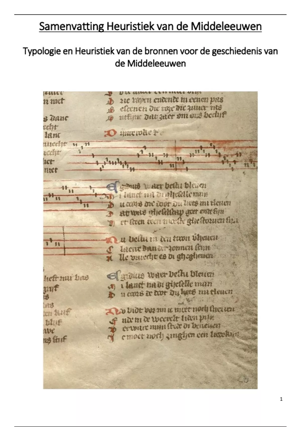 Voordeelbundel v. alle samenvattingen en info over het vak Heuristiek Middeleeuwen