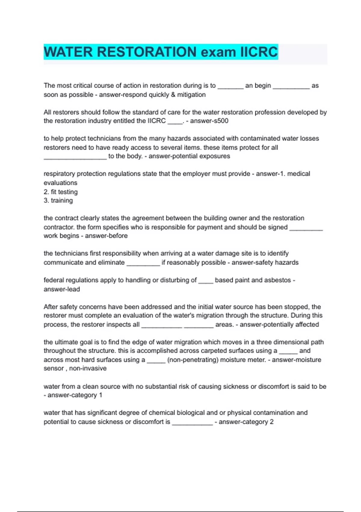 IICRC Water Restoration Exam Package Deal -Solved verified solution