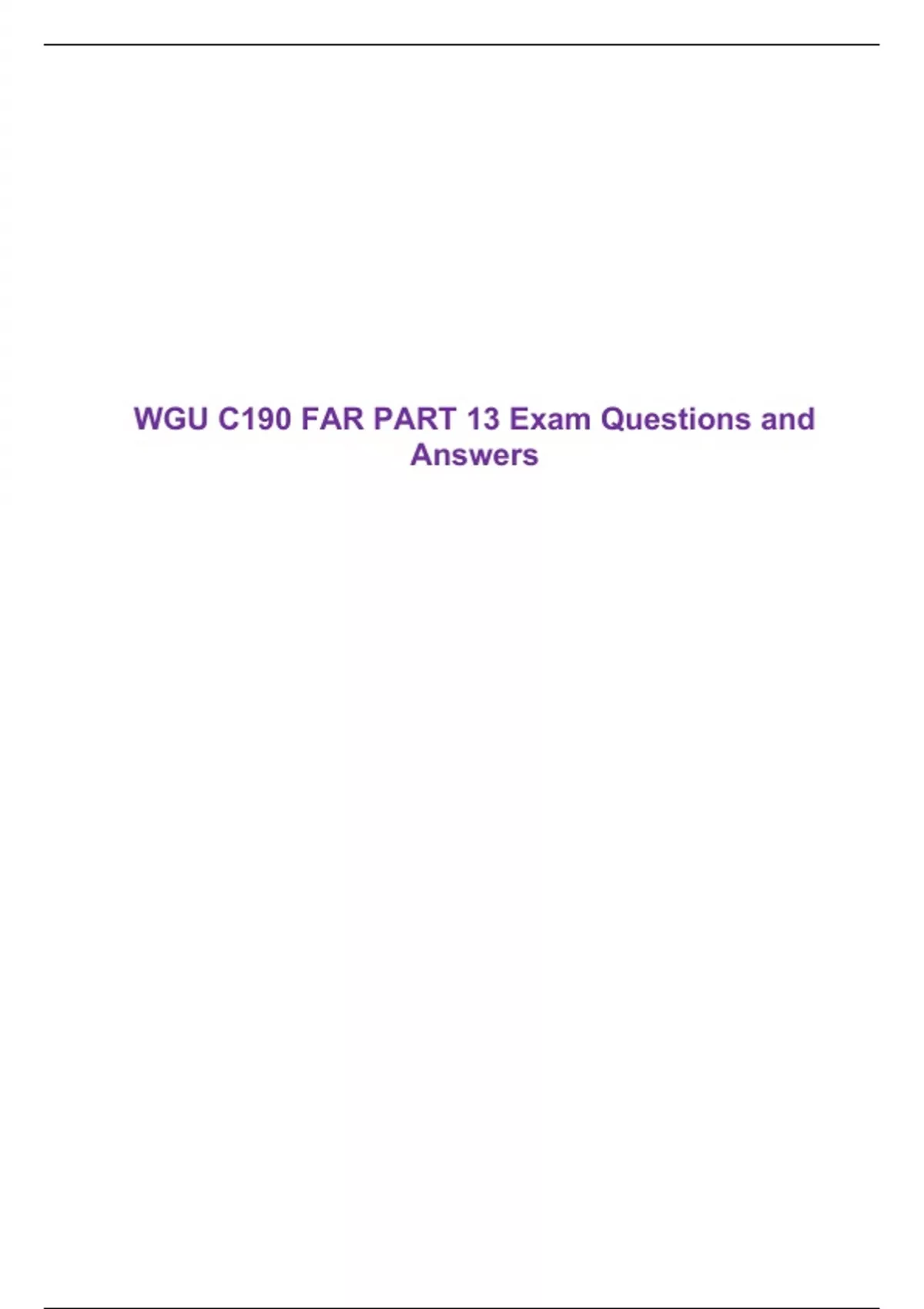 WGU C190 FAR PART 13 Exam Questions and Answers