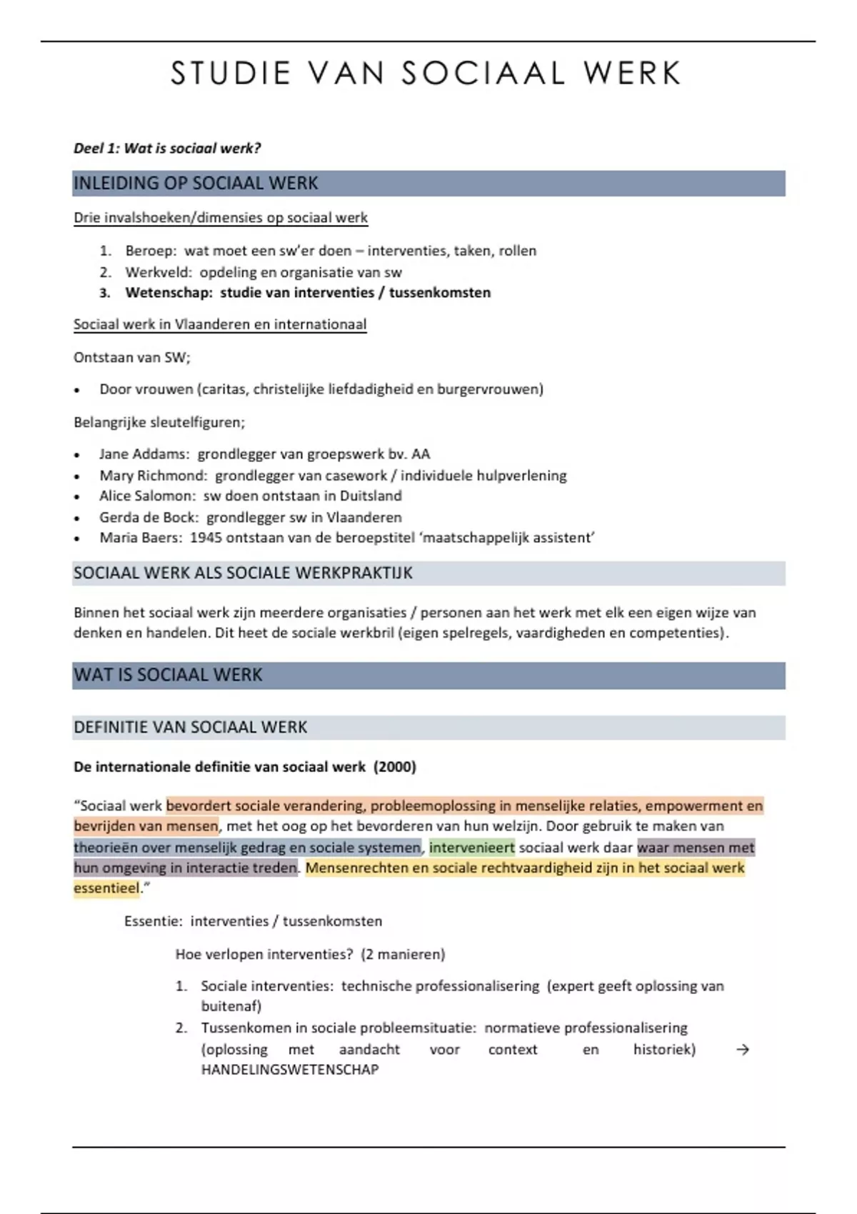 Samenvatting Studie van sociaal werk