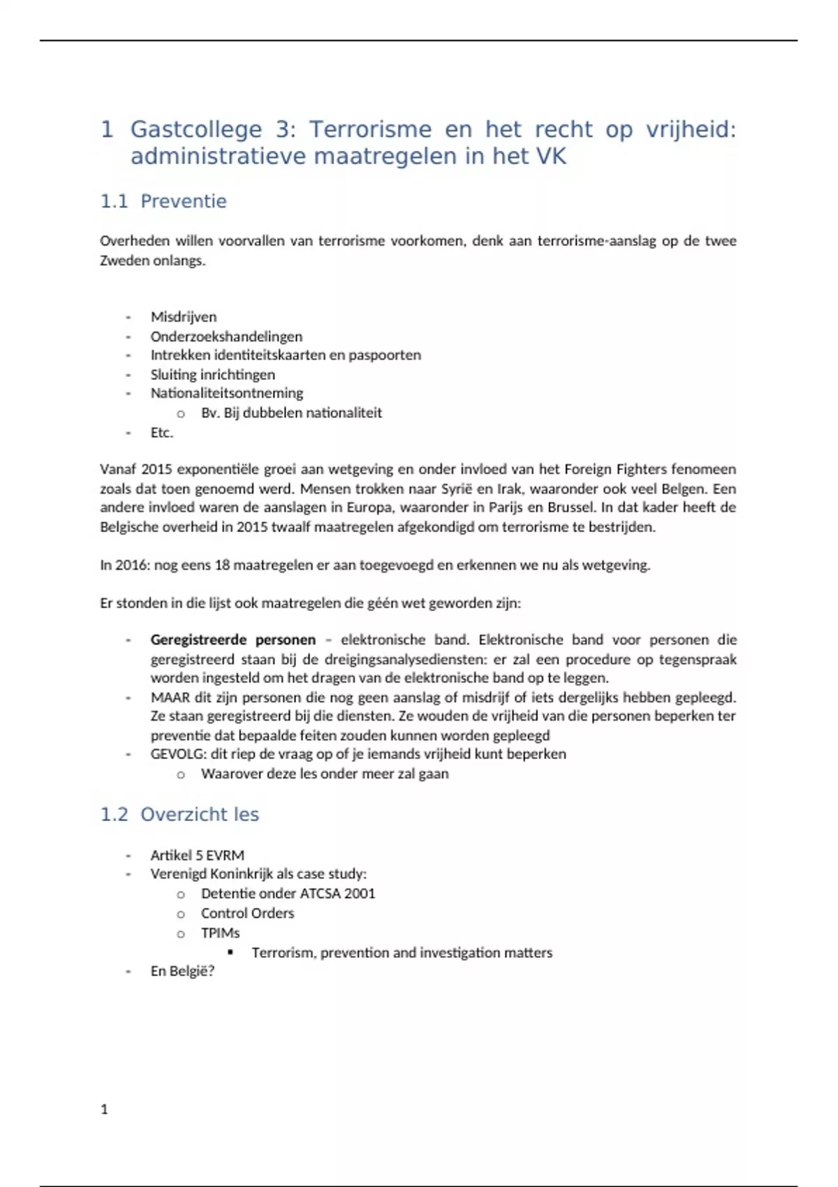 Deze bundel bevat twee documenten, met name de lesnotities genomen bij het gastcollege 3 (van Ward Yperman) en het gastcollege 4 (van Brigitte Herremans) van het vak Veiligheid, terrorisme en mensenrechten.