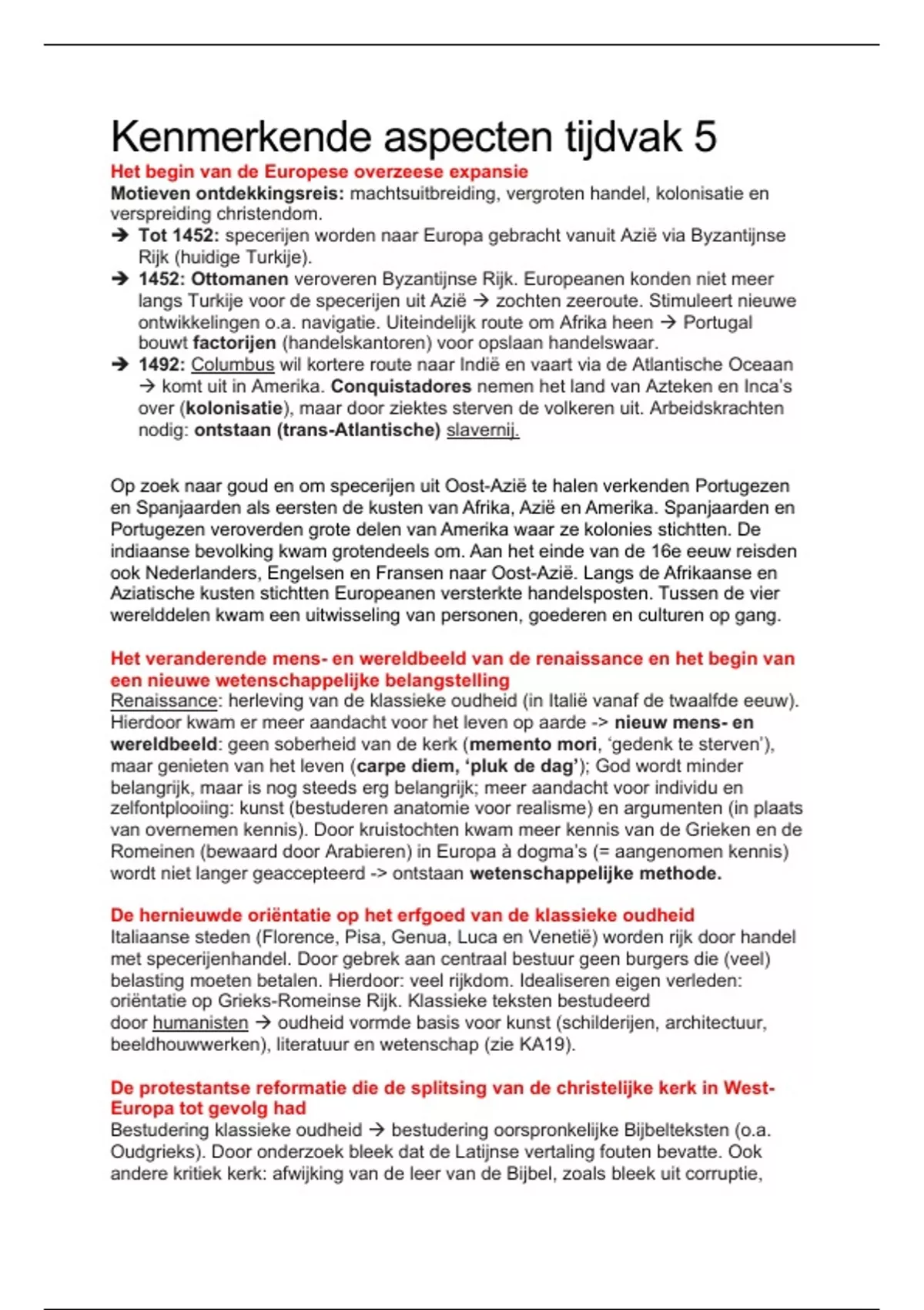 de kenmerkende aspecten uitgewerkt en beschreven wat het in houdt. Tijdvak 5 - 10 is de examenstof !!