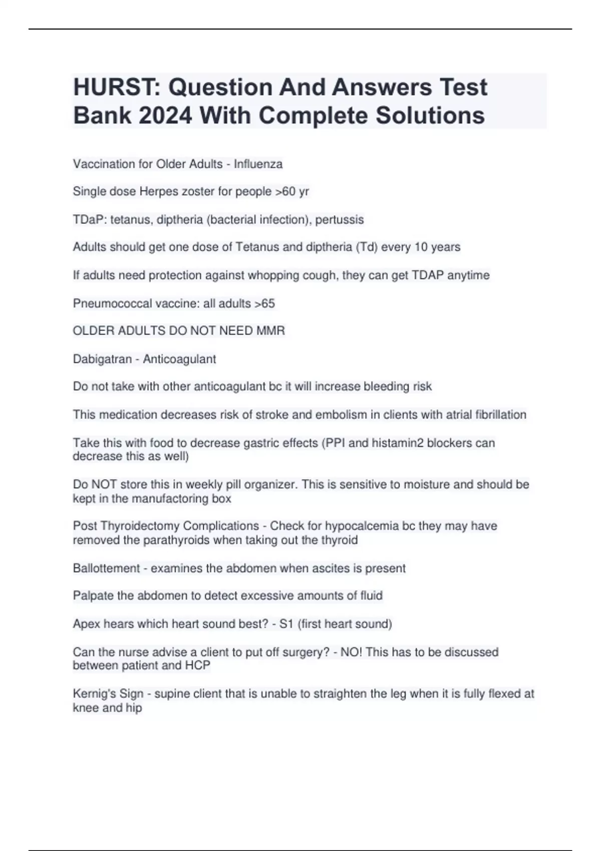 Choose quality study materials for nursing schools to ensure success in your studies and future career. "Welcome to PossibleA - your perfect study assistant! Here you will find Quality sheets, study materials, exams, quizzes, tests, and notes to prepare for exams and study successfully. Our store offers a wide selection of materials on various subjects and difficulty levels, created by experienced teachers and checked for quality. Our quality sheets are an easy and quick way to remember key points and definitions. And our study materials, tests, and quizzes will help you absorb the material and prepare for exams. Our store also has notes and lecture summaries that will help you save time and make the learning process more efficient.