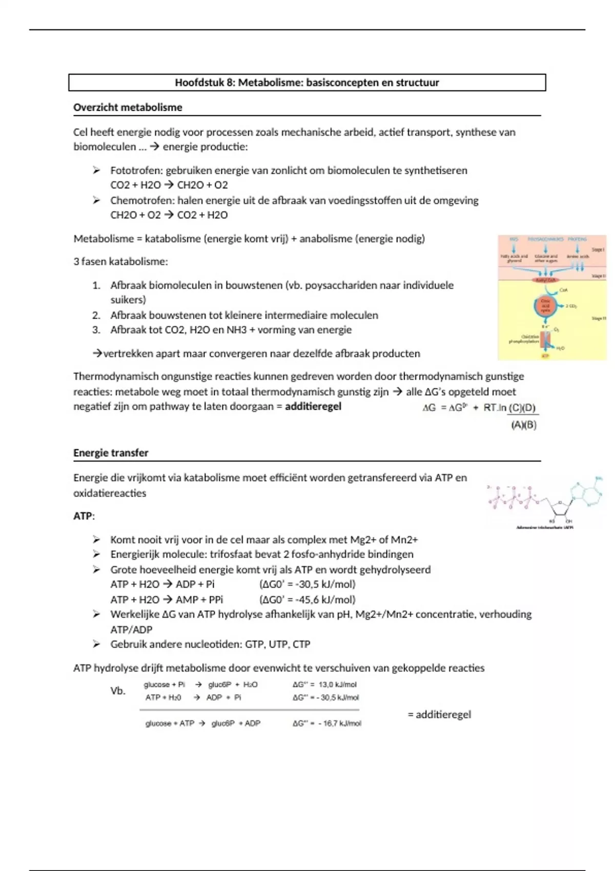 Samenvatting hoofdstuk 8 enzymologie: Basisconcepten metabolisme, 2e bachelor biomedische wetenschappen