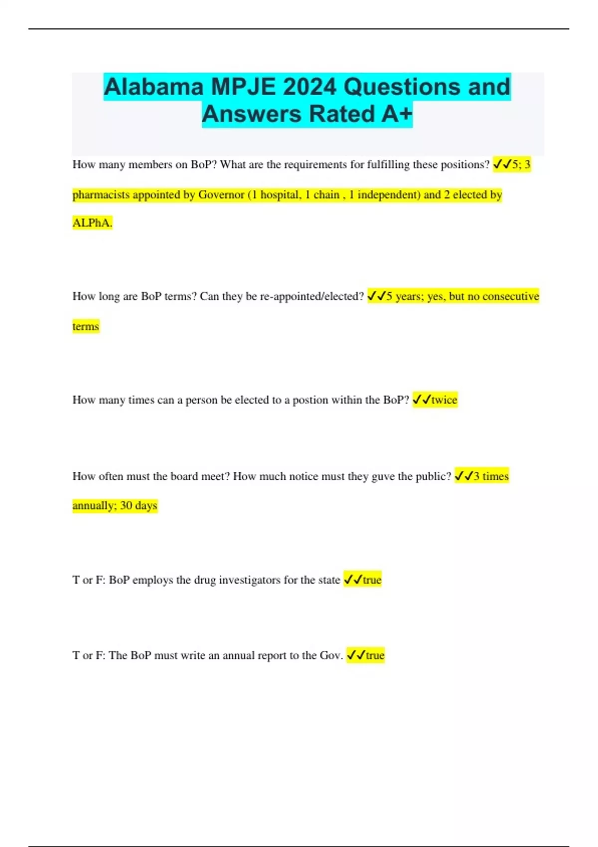 Alabama MPJE Bundled Exams with Certified Solutions - All Rated A