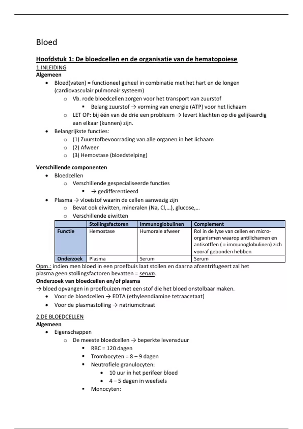 Samenvatting bloed 1 geneeskunde ua
