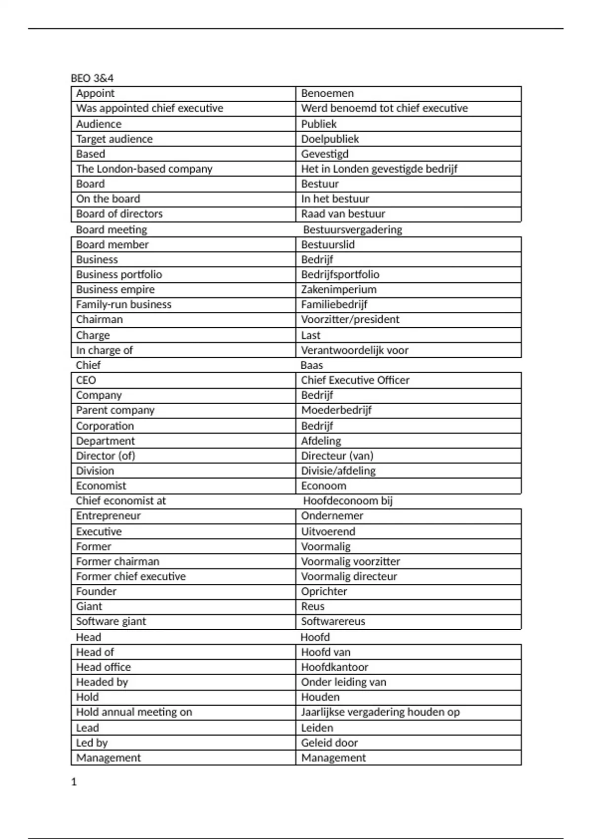 Alle woordenlijsten van economisch engels 1 (Engels -> Nederlands), collocations zijn ook vertaald. BEO 1 & 2 is voor het eerste semester, BEO 3,4,5 & 6 zijn voor het tweede semester.