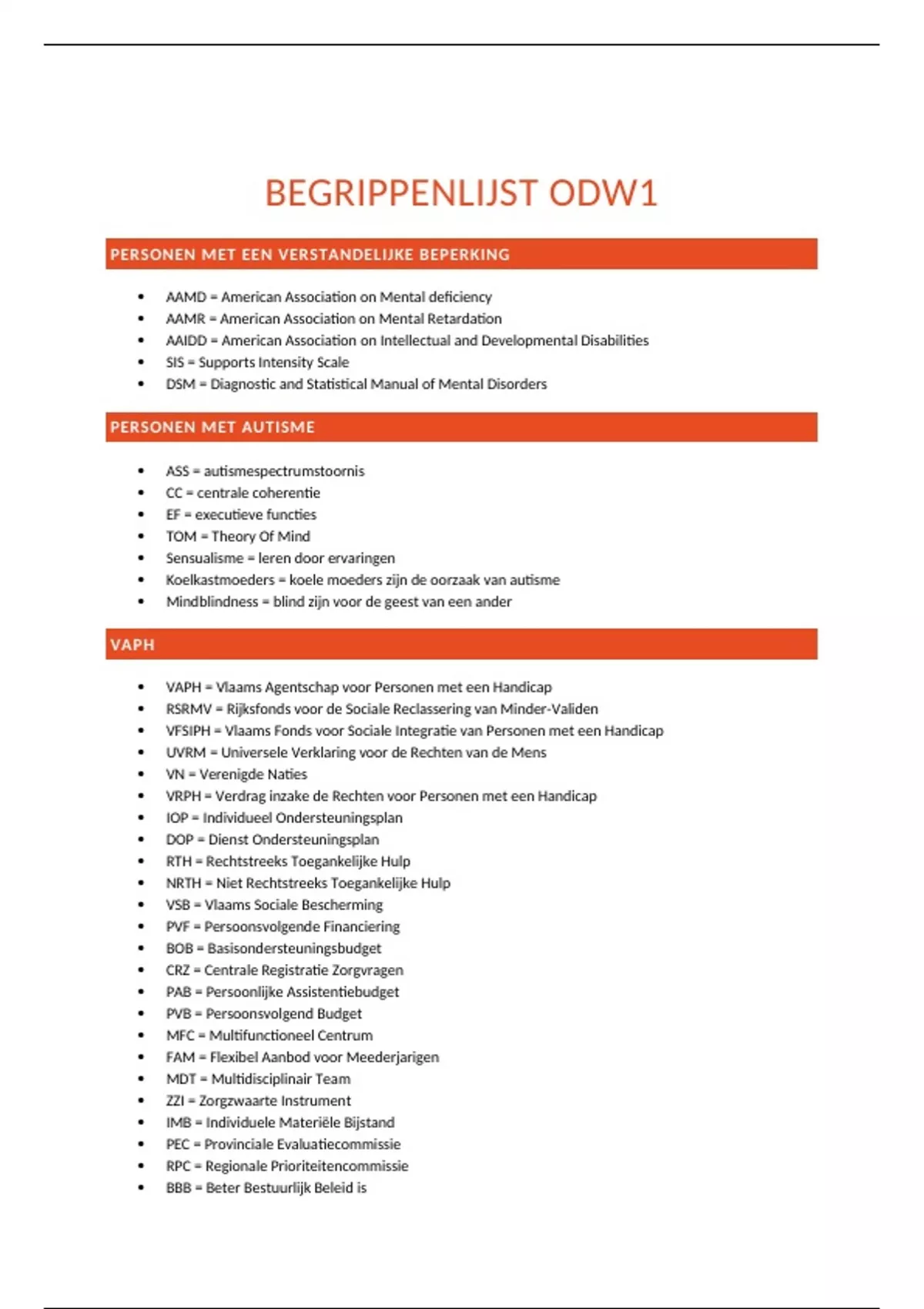 samenvatting (pathologische) afkortingen ODW1