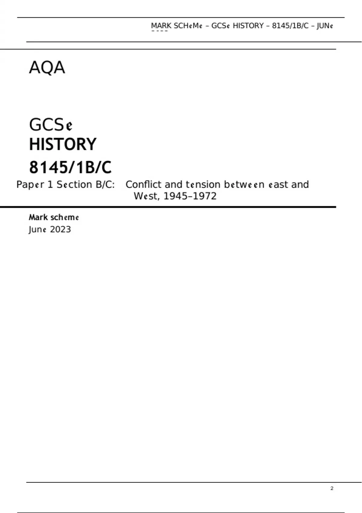 AQA GCSE HISTORY 8145/1B/C Paper 1 Section B/C: Conflict and tension between East and West, 1945–1972 Mark scheme June 2023