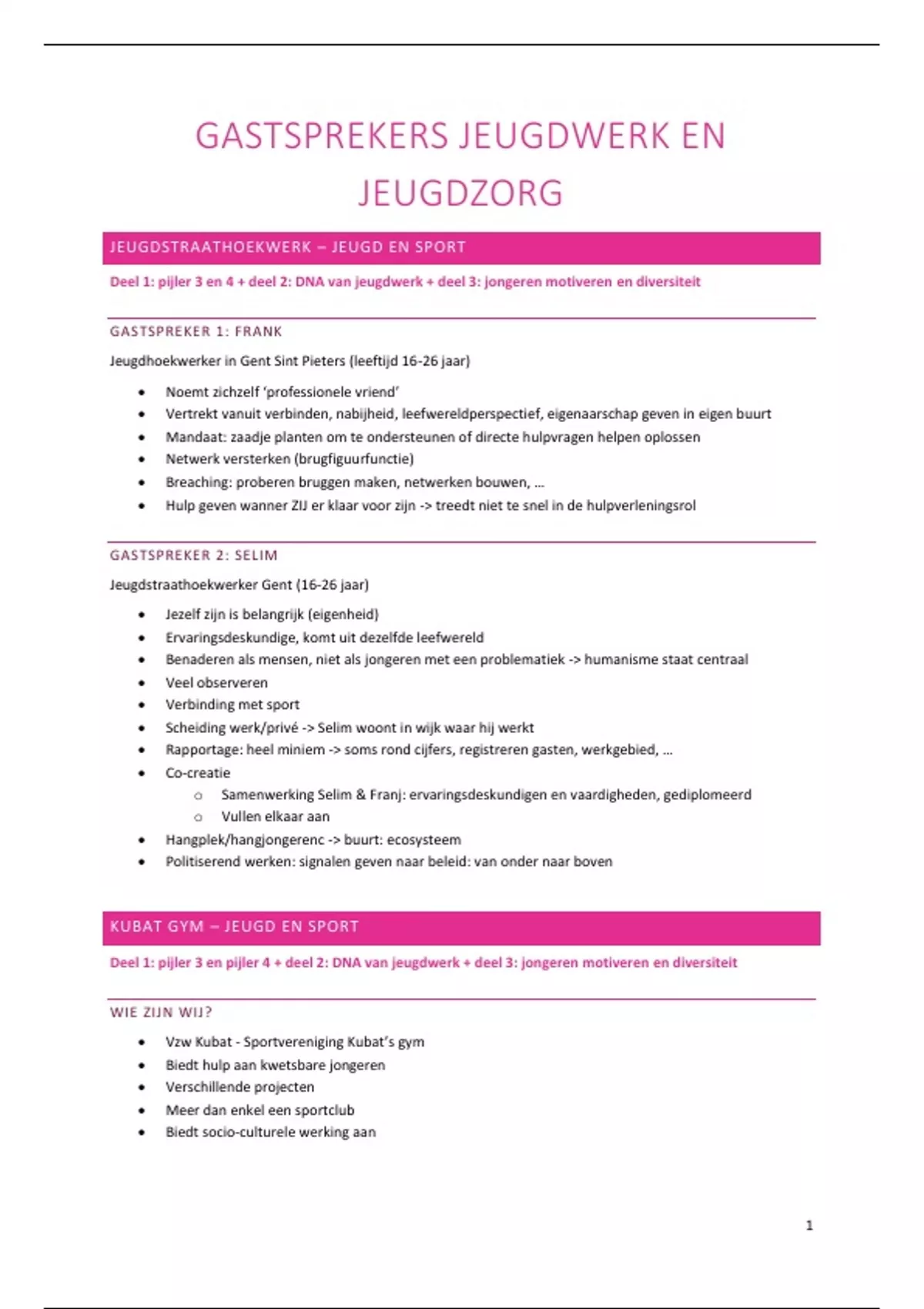 Een bundel van de samenvatting van het vak en de gastlessen 'Jeugdwerk en jeugdzorg'. Semester 2 van het derde jaar Sociaal Werk aan de HoGent. Academiejaar: