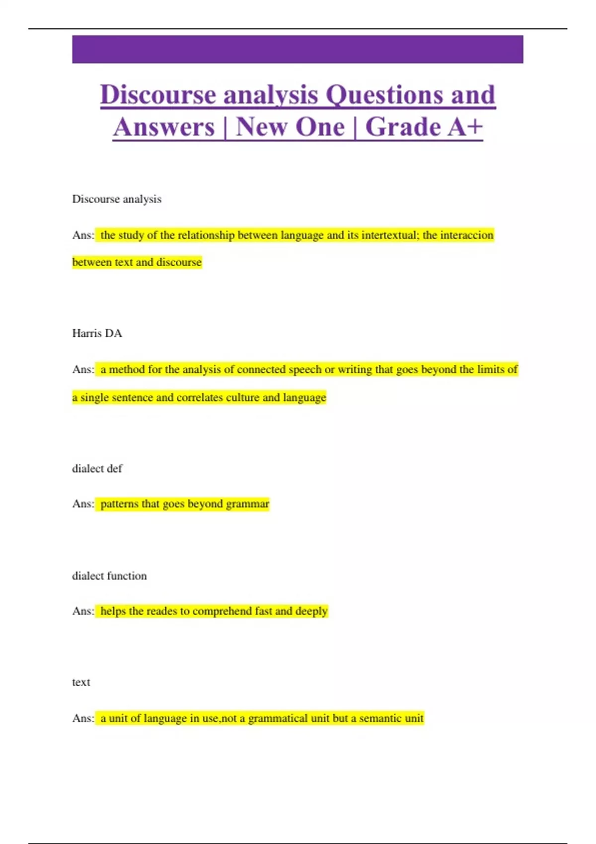 Discourse Analysis exams Pack Questions and Answers | New One | Grade A+