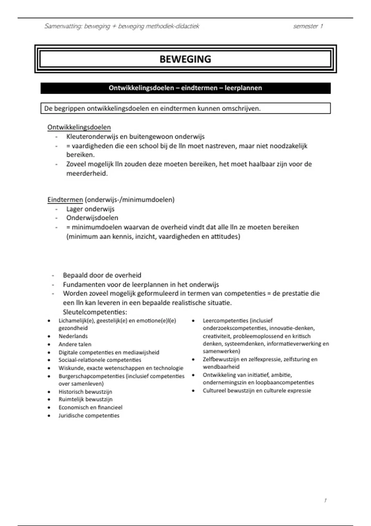 Samenvatting beweging (lager onderwijs - Vives hogeschool)