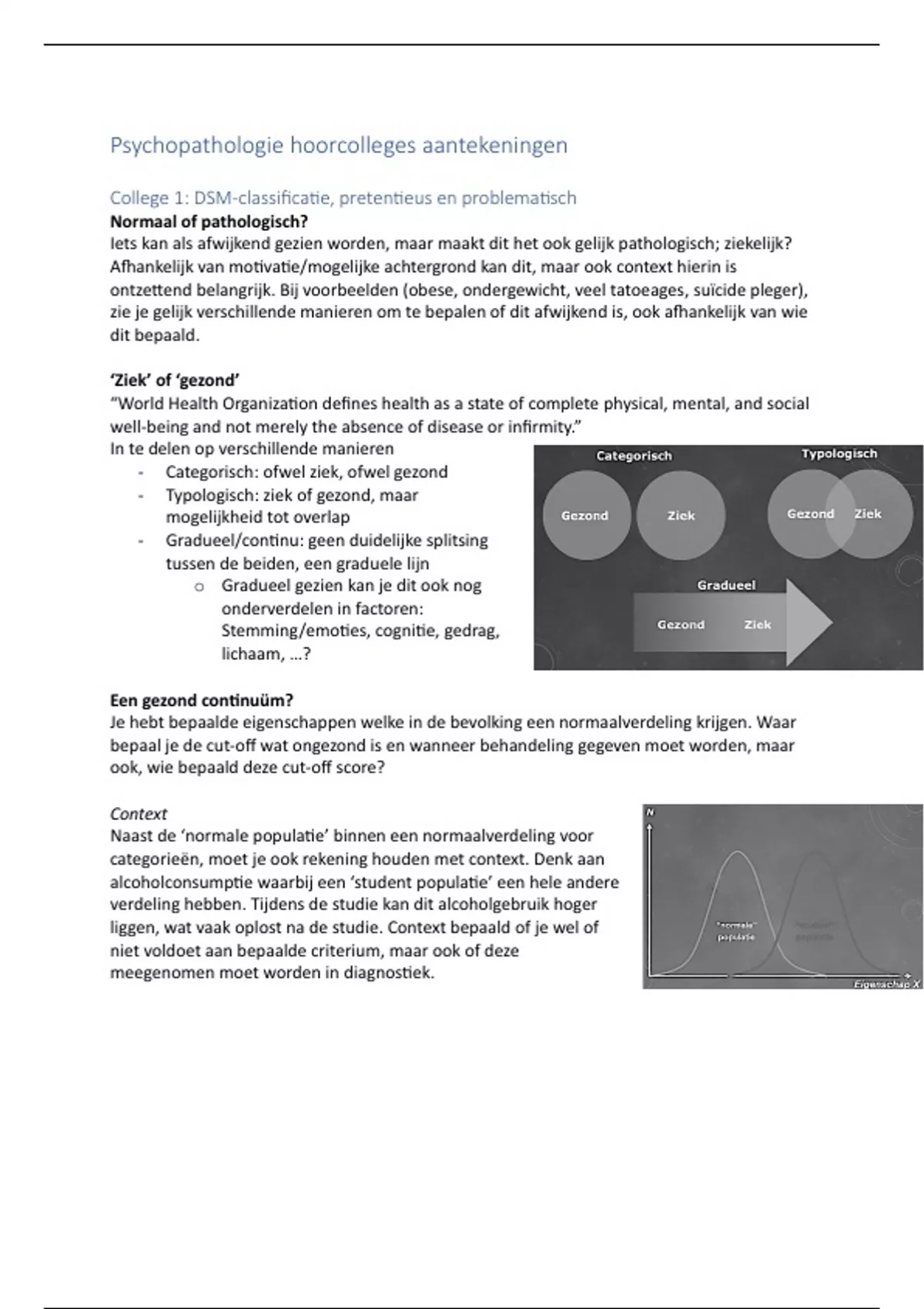 Hoorcollege aantekeningen van zowel psychodiagnostiek als ook psychopathologie