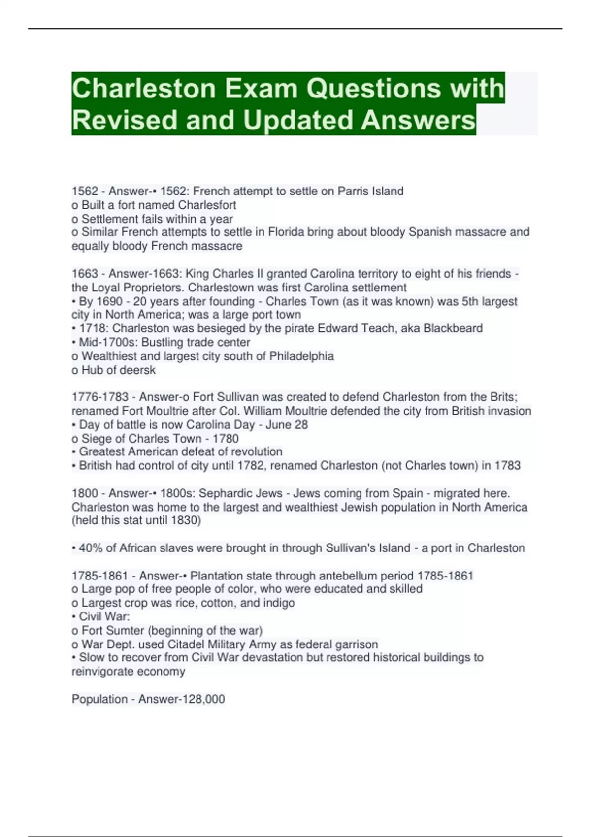 Bundle For Charleston Exam Questions with Revised and Updated Answers
